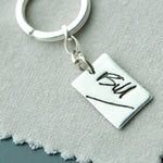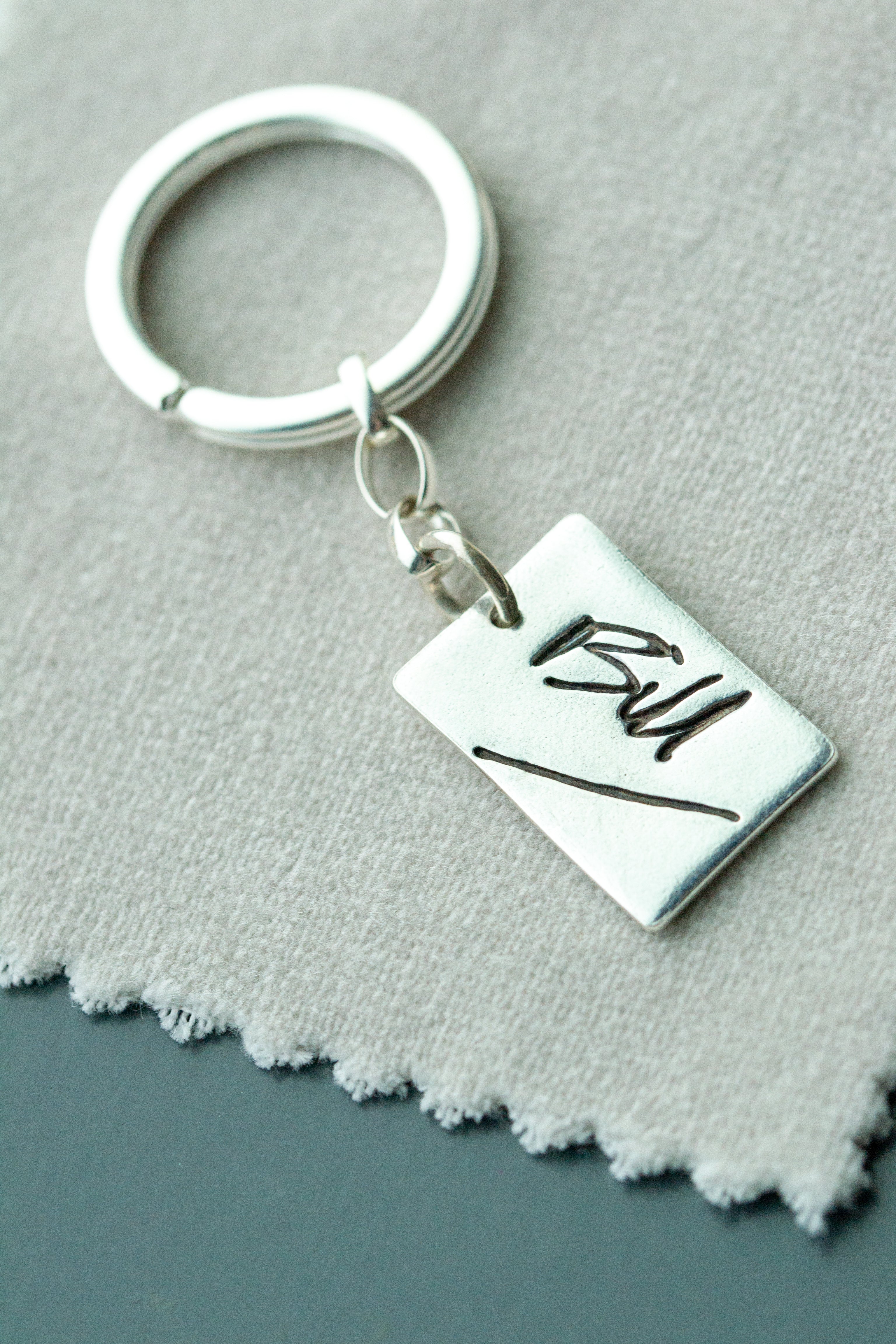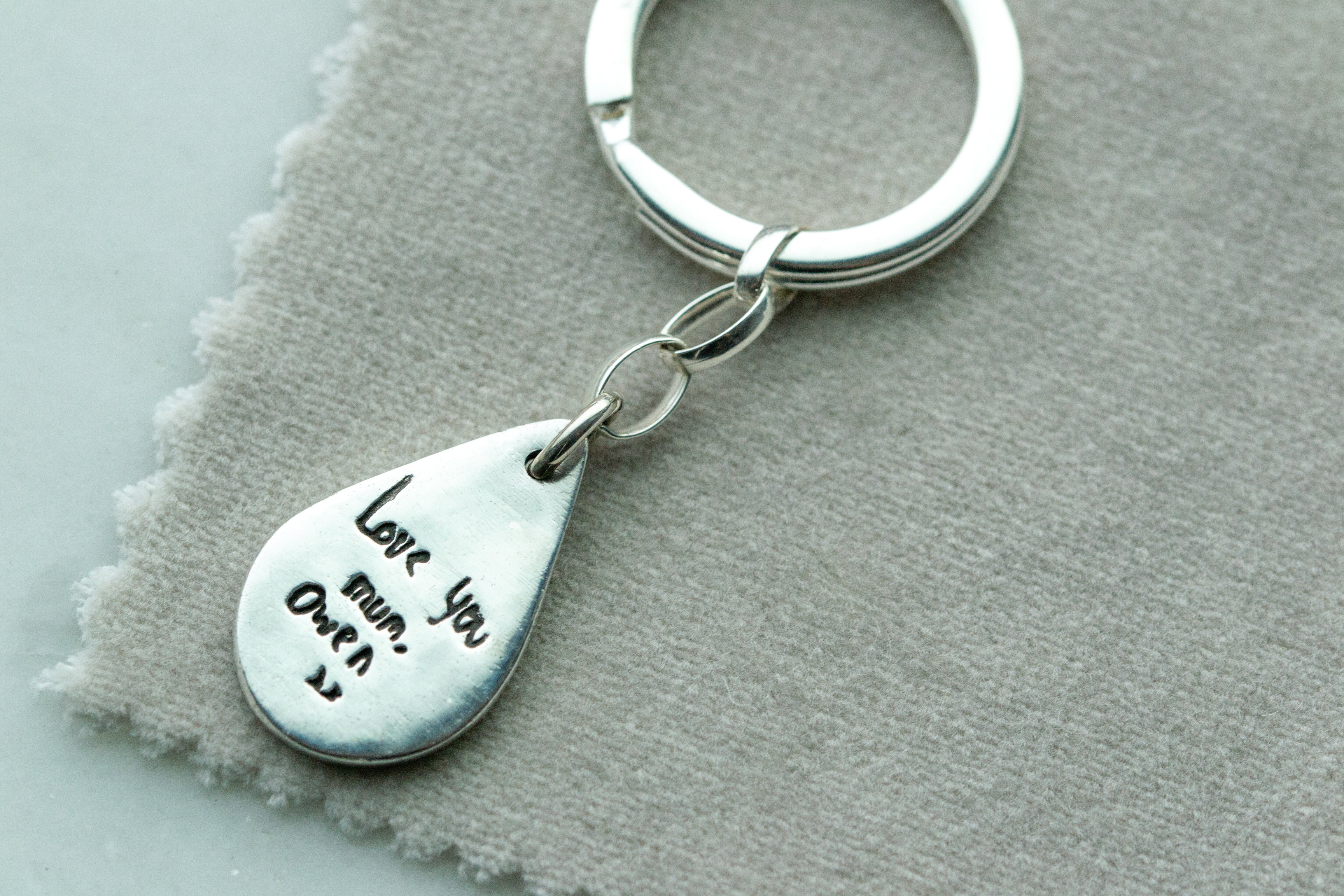 Our sterling silver keyring is a perfect keepsake, featuring custom handwriting jewellery. Capture an original handwritten name or phrase on one side, with the author’s name and age engraved on the reverse. Simply take a clear picture of the handwriting and upload it with your order. We’ll transform it into a sterling silver keyring in a shape of your choice, making it an ideal gift for both him and her. Choose from a variety of shapes to suit your style. Your finished handwriting jewellery will be delivered beautifully packaged, complete with a polishing cloth and care advice.