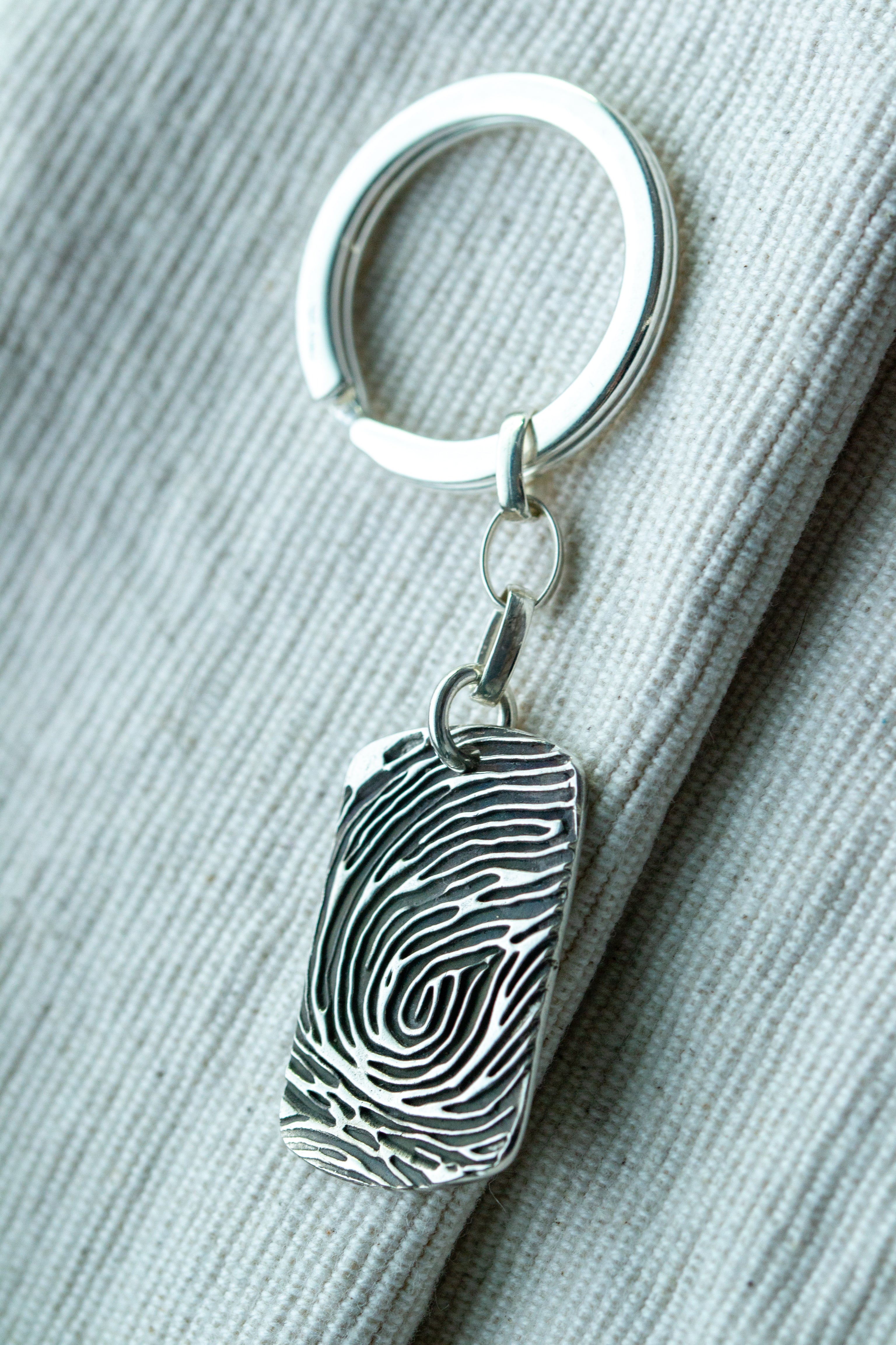 Osjetite teksturu pravog otiska prsta, ukrašenog srebrnim privjeskom za ključeve. I nije samo za ispis vašeg djeteta... ovo je lijepa opcija za držati odraslu voljenu osobu blizu. Ako već imate ispis tinte, jednostavno ga prenesite uz svoju narudžbu. U suprotnom uključite jedan od naših kompleta za ispis tintom i pošaljite nam svoj ispis kasnije. Otisak ćemo oslikati u obliku po vašem izboru, što će ga učiniti izvrsnim poklonom za njega, ali i za nju. Vaš gotovi predmet uključuje ručno ugravirano ime i dob na stražnjoj strani.
