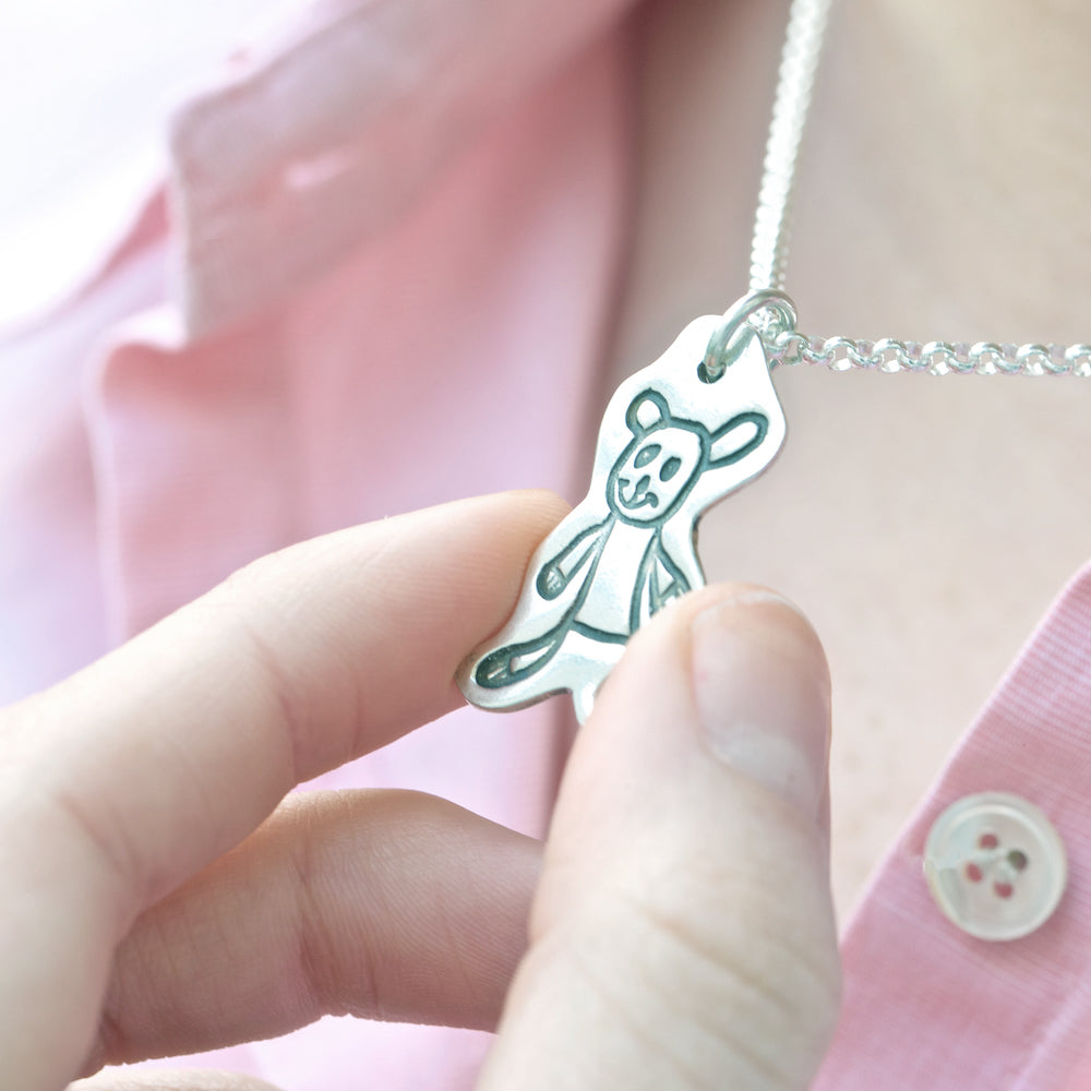 Elegantan način da pokažete "mini remek-djelo". Odaberite svoj omiljeni crtež i pretvorite ga u prekrasan komad personaliziranog nakita! Fotografirajte svoje umjetničko djelo i prenesite ga tijekom postupka naručivanja. Smanjit ćemo sliku i utisnuti je u privjesak od čistog srebra u obliku po vašem izboru. A što kažete na graviranje imena i godina umjetnika na komadu? Da, to je uključeno u cijenu! Zatim upotpunite svoj predmet jednim od naših talijanskih, profinjenih, finih srebrnih lančića belcher (s pet opcija veličine). I na kraju, imate mogućnost uključiti rođeni kamen po svom izboru. Savršen!