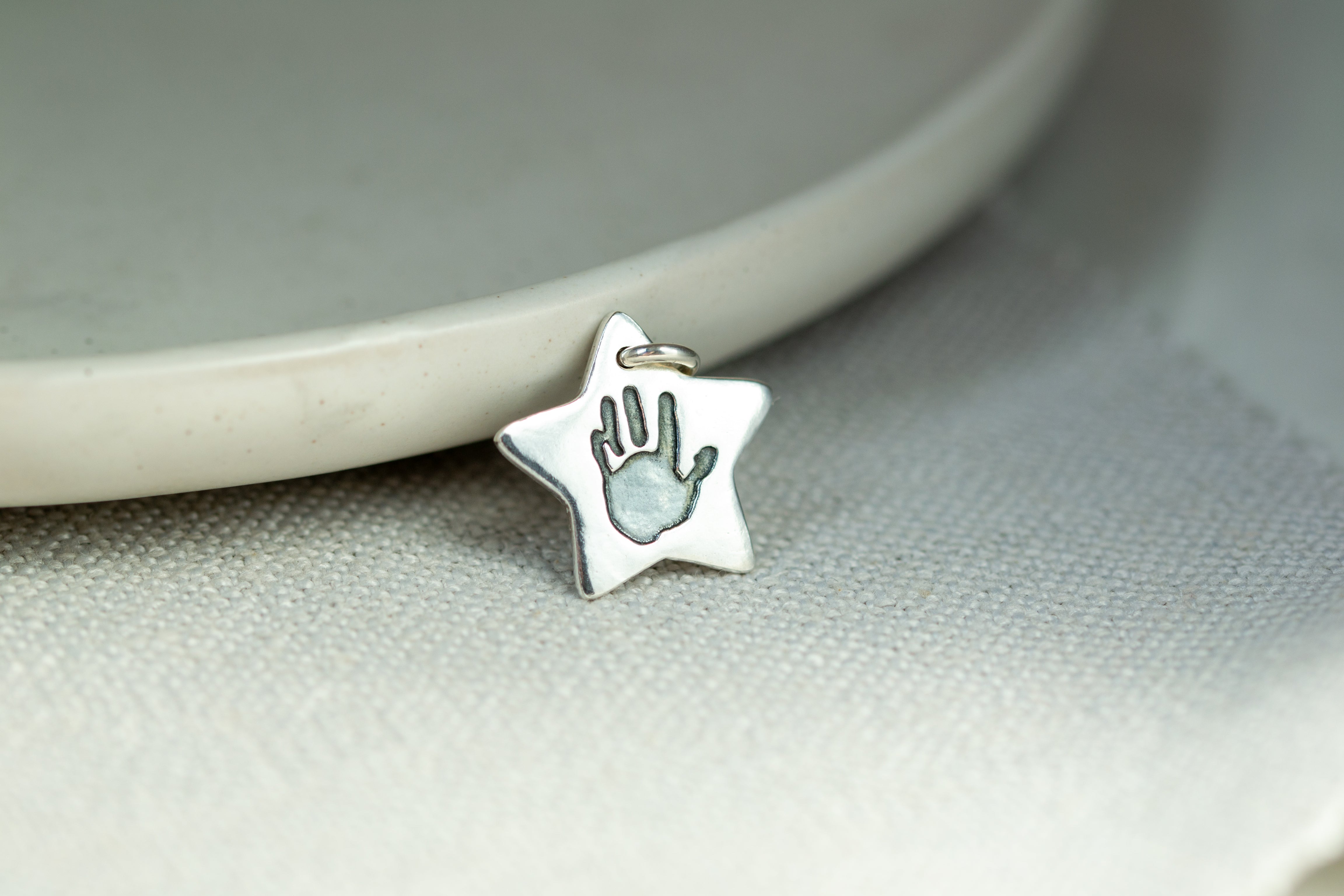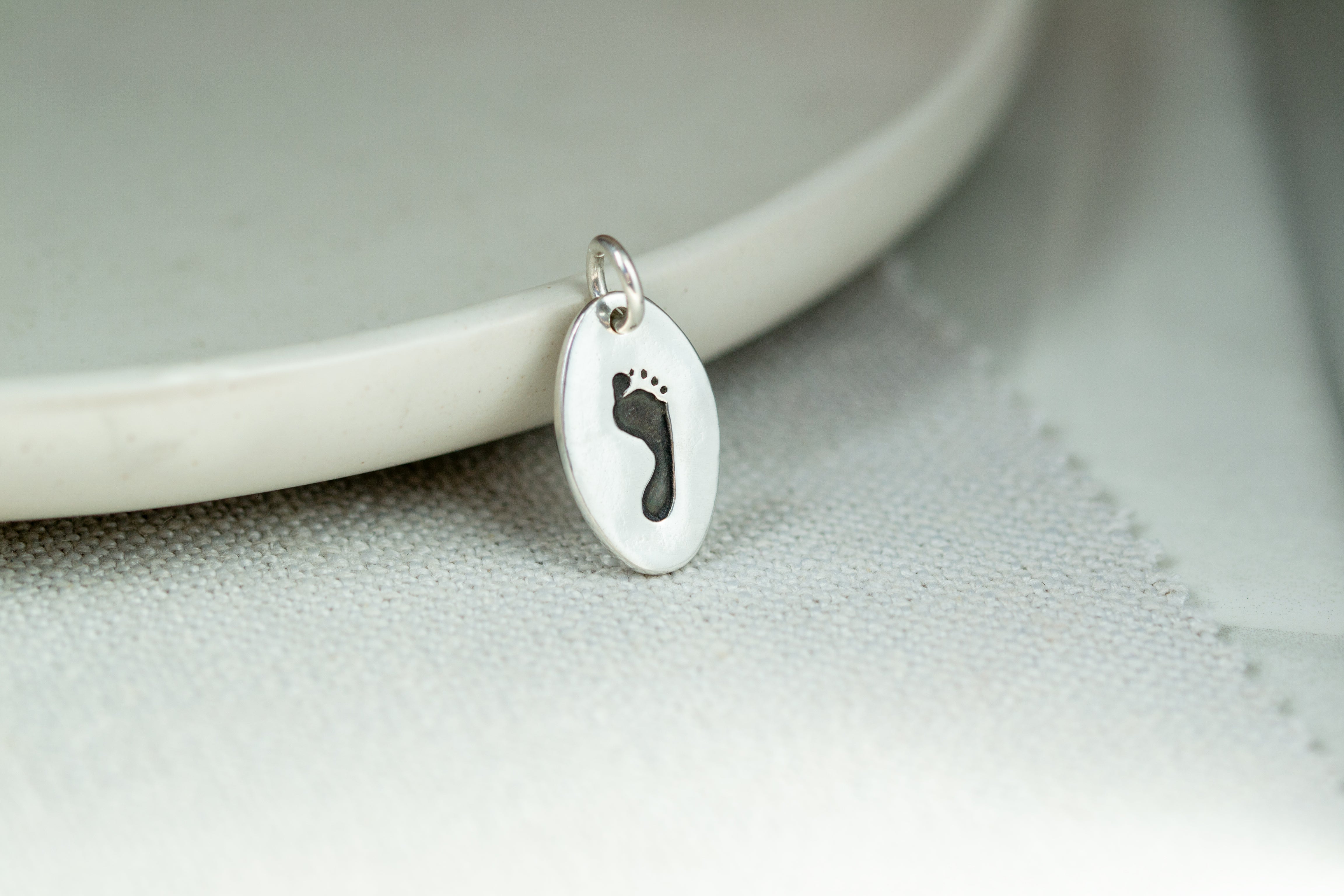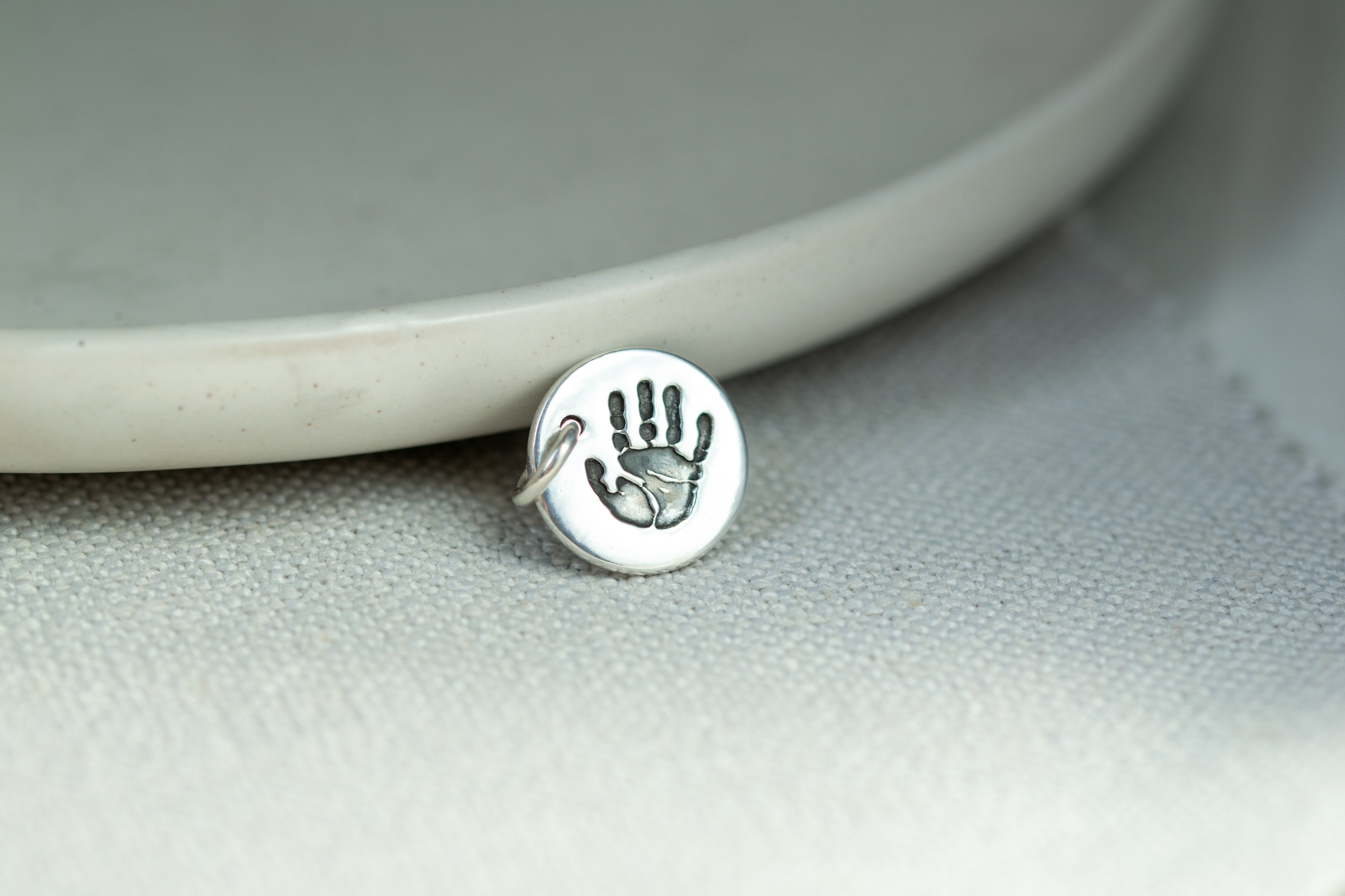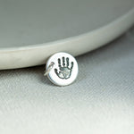 Savršen dodatak vašoj kolekciji šarma! Jedan od naših najpopularnijih predmeta...jednostavni privjesak od čistog srebra s otiskom ruke ili stopala s jedne strane, s imenom i godinama ugraviranim na poleđini. Svaki je privjesak ručno izrađen i dolazi na srebrnom prstenu za pričvršćivanje tako da se može pričvrstiti na postojeću narukvicu ili ogrlicu. Snimite jasnu sliku postojećeg otiska ili glinenog odljeva i prenesite ga uz svoju narudžbu. Ili uključite jedan od naših kompleta za otiske ruku i stopala bez tinte kako biste dobili originalni otisak. Birajte između raznih oblika privjesaka...vaš će gotovi predmet biti isporučen, lijepo upakiran, zajedno s krpom za poliranje i savjetima za njegu.