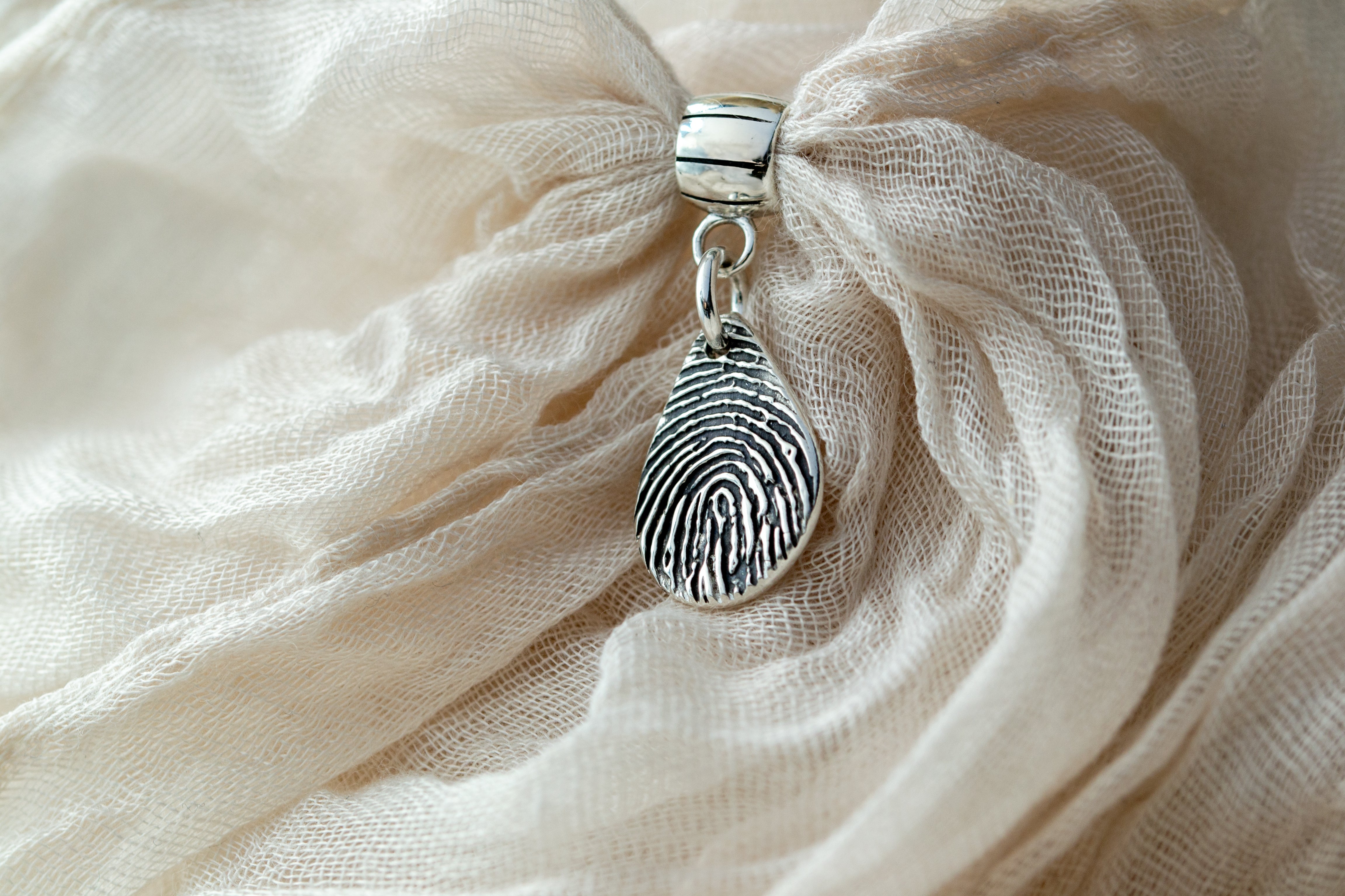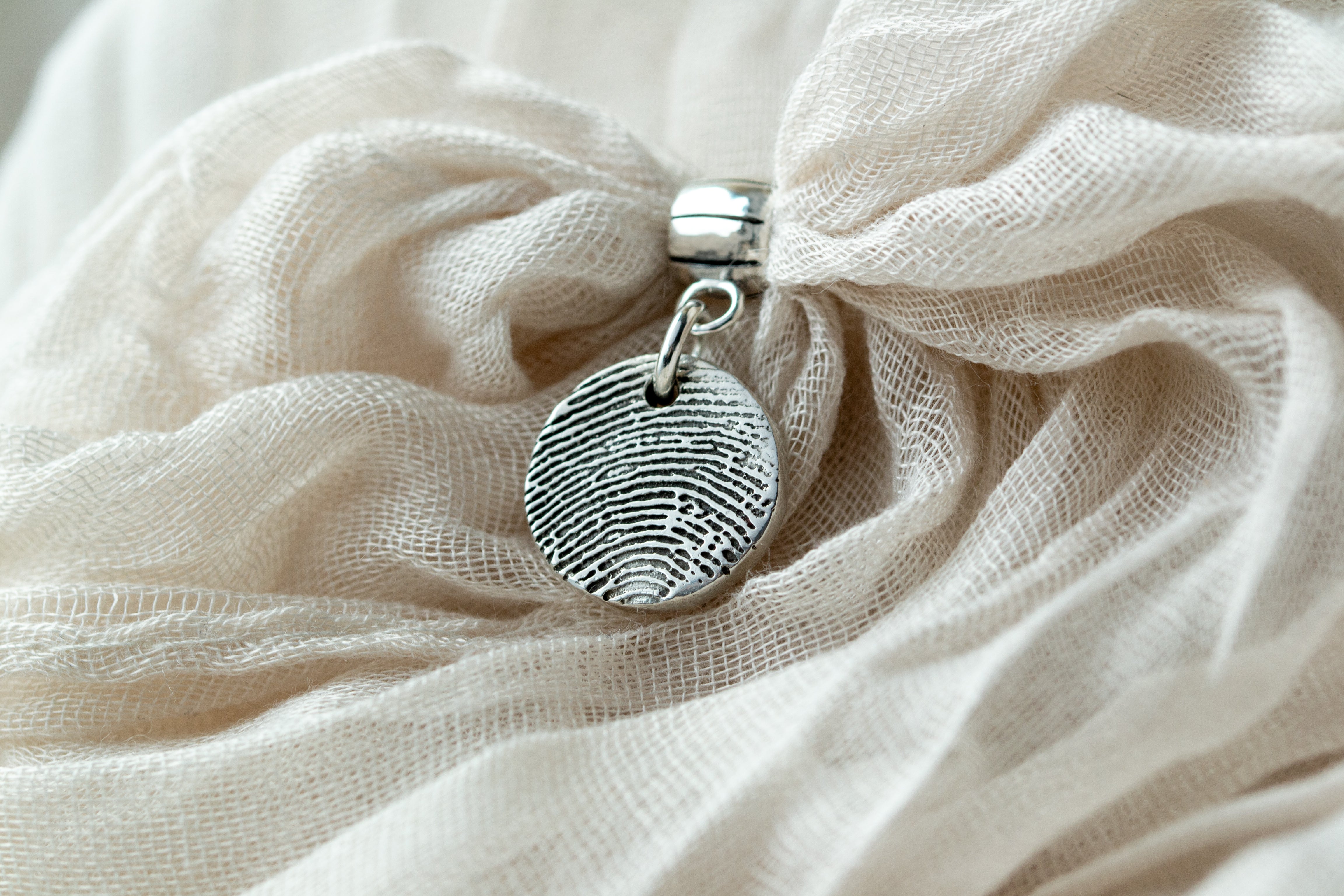 Ima li mjesta za još jedan privjesak na vašoj narukvici iz Pandore? Zašto ne kupiti nešto sasvim osobno? Sačuvajte teksturu otiska prsta na privjesku od čistog srebra, na kopči koja je kompatibilna s nakitom iz Pandore. Ako već imate otisak uzet tintom, jednostavno ga učitajte prilikom naručivanja nakita ili svojoj narudžbi dodajte pribor za uzimanje otiska tintom. Odaberite privjesak iz ponude raznih oblika, a mi ćemo ugravirati ime i dob osobe na poleđini privjeska što je uključeno u cijenu!