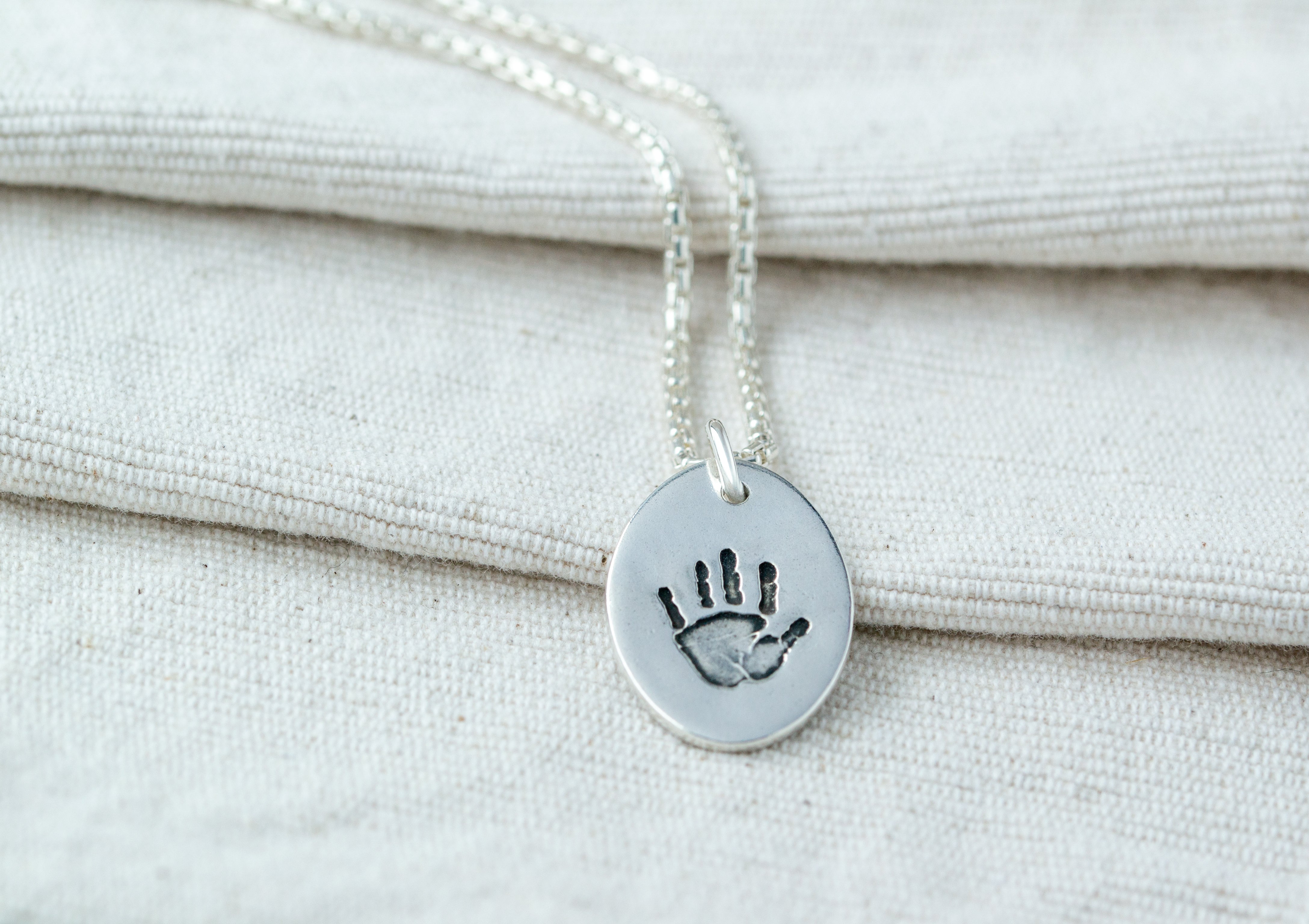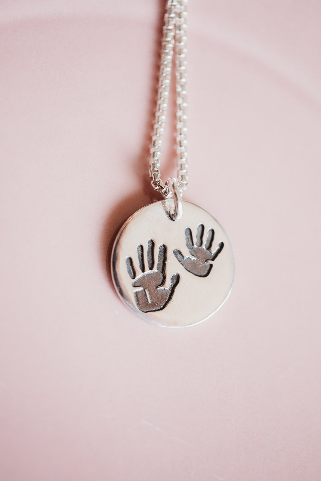 Ako preferirate klasičnu ogrlicu s malo više sadržaja, onda bi ovo mogla biti prava stvar za vas. Opcija "za njega" kao i "za nju". Uhvatite trenutak od dana rođenja bebe! Privjesak od čistog srebra s otiskom ruke ili stopala uz ručno ugravirano ime i dob. Snimite jasnu sliku postojećeg otiska ili glinenog odljeva i prenesite ga uz svoju narudžbu. Ili uključite jedan od naših kompleta za otiske ruku i stopala bez tinte kako biste dobili originalni otisak. Birajte između raznih oblika privjesaka. Zatim odaberite između tri opcije veličine za svoj lančić od srebrne karike. I na kraju, možete dodati kamenčić za prefekta, jedinstvenu uspomenu.